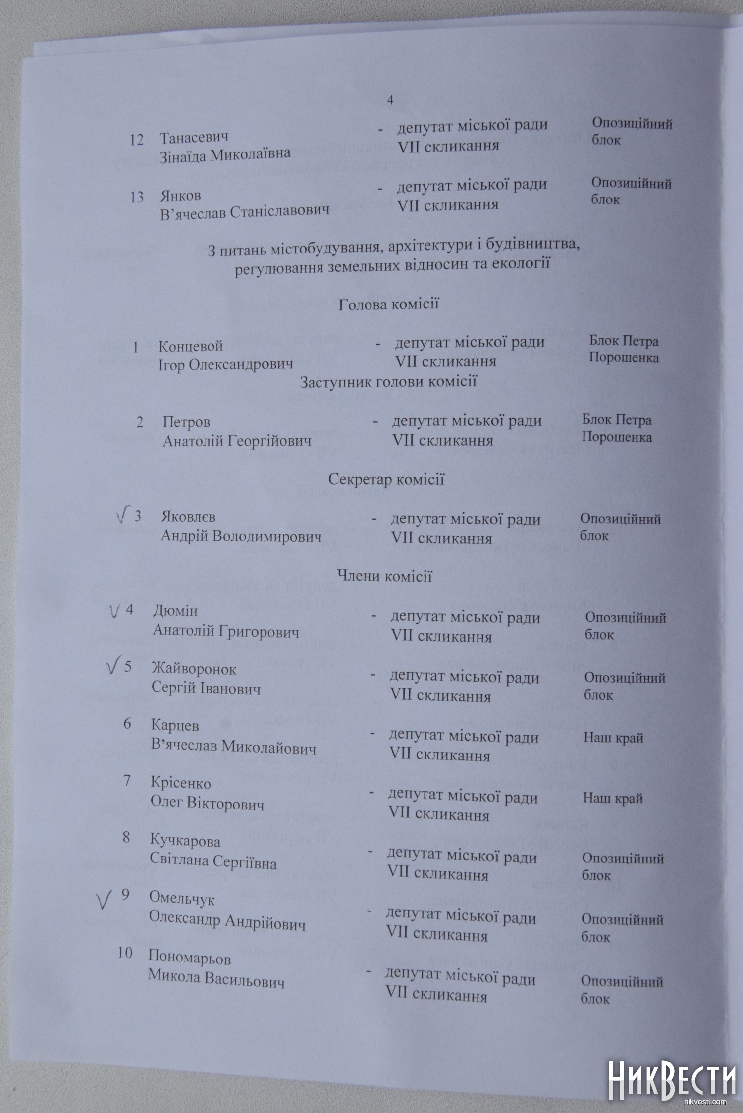 Комиссия по вопросам градостроительства, архитектуры и строительства, регулирования земельных отношений и экологии - представитель фракции «Блок Петра Порошенко» Игорь Концевой.