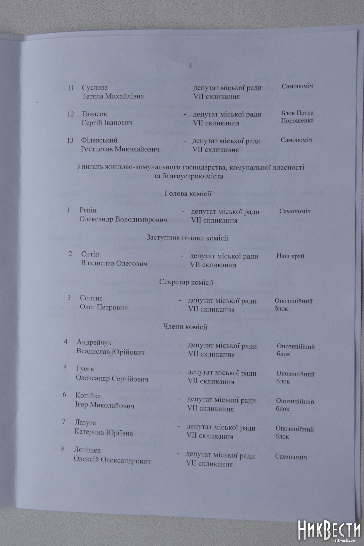 Комиссия по вопросам жилищно-коммунального хозяйства, коммунальной собственности и благоустройства города - представитель фракции «Самопомощь» Александр Репин.