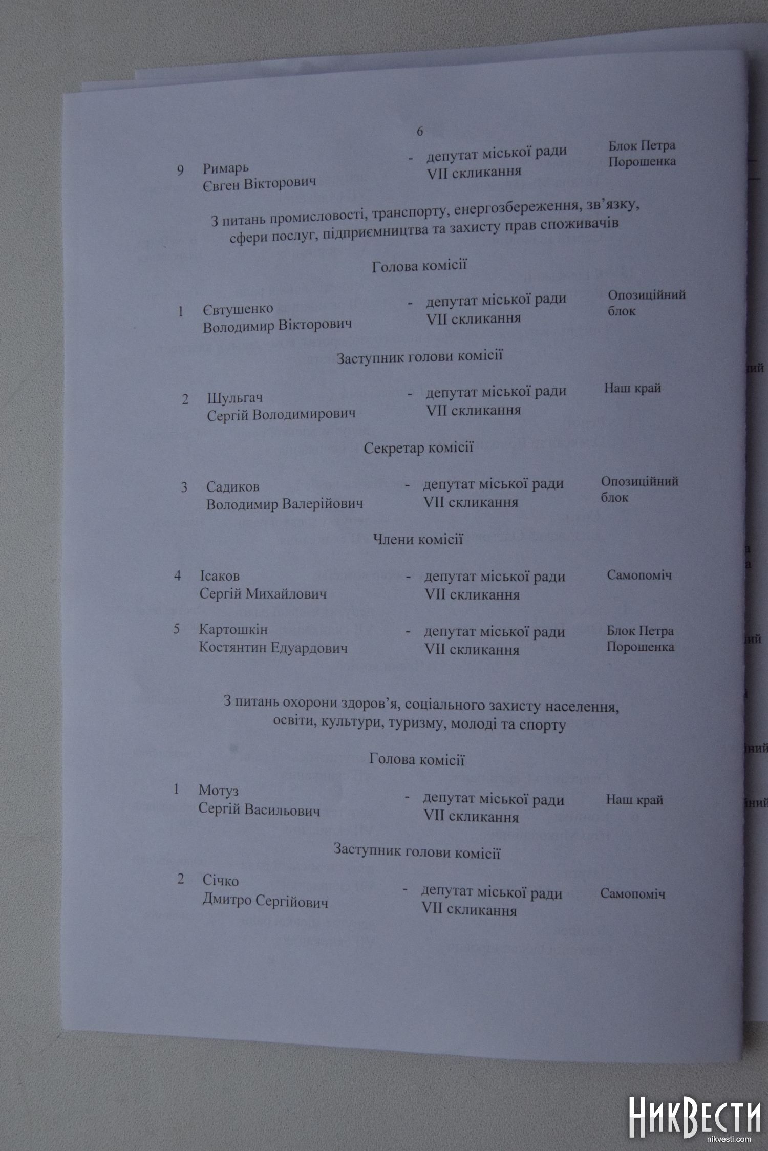 Комиссия по вопросам здравоохранения, социальной защиты населения, образования, культуры, туризма, молодежи и спорта - представитель фракции «Наш край» Сергей Мотуз.