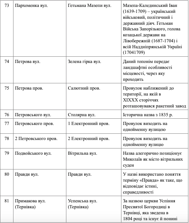 Под переименование попали улицы, переулки, проспекты, площади, парки и скверы Николаева. Всего – 129 объектов.