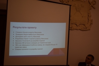 Руководитель проекта Роман Ханжин рассказал о хронологии выполнения основных этапов, а также представил финансовый отчет. Команде удалось привлечь дополнительные 105 тысяч гривен, благодаря содействию IRI – Международному республиканскому институту. К работе над реализацией проекта были приглашены зарубежные эксперты, которые имеют глубокий и системный опыт в разработке стратегических документов. Всего в стратегической сессии приняли участие 350 горожан.