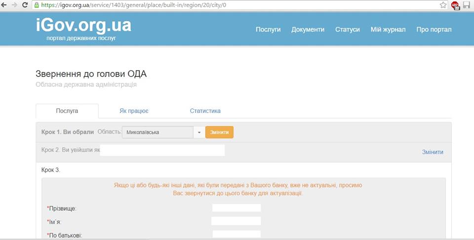 — Вы живете в самом дальнем уголке области и хотите обратиться к губернатору? Теперь Вам не надо тратить свои кровные тяжко заработанные, чтобы добраться до областного центра, блуждать по коридорам обладминистрации и искать место, где примут заявление или обращение. Просто переходим по ссылке (https://igov.org.ua/service/1403/general), идентифицируем себя и пишем обращение. А потом ждем ответа в удобной для Вас форме в установленные законом сроки. Что все это значит?! Да-да-да, в Николаевской ОГА появилась первая электронная услуга на базе IGov, - говорится в сообщении.