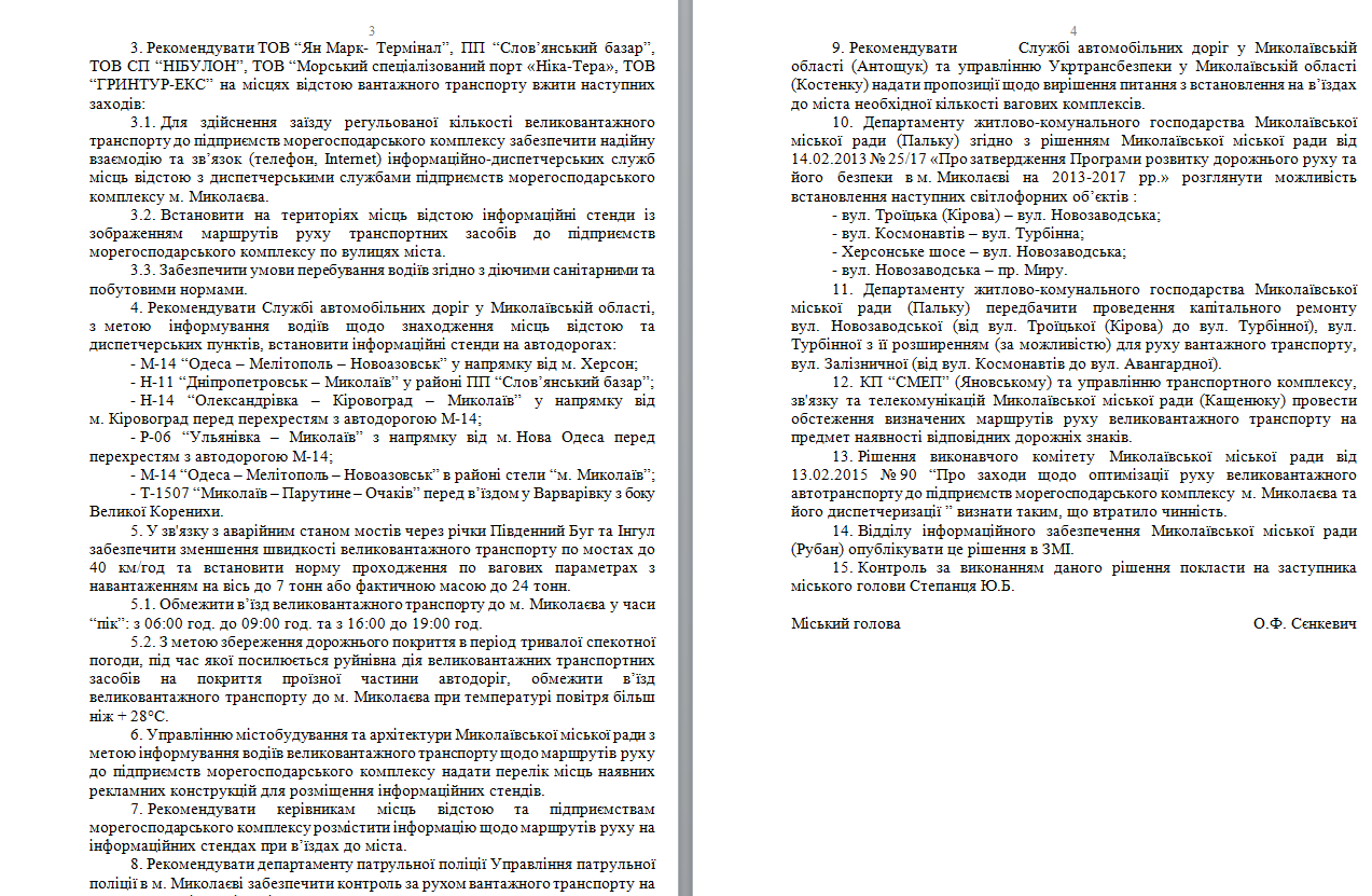 — Сейчас сотрудничаем с копаниями и терминалами по совместному финансированию ремонта дороги, которая будет единым въездом в порты. Это для того, чтоб освободить город от габаритного транспорта, который разрушает дороги. Это решение обсудили на уровне мэра и губернатора, создали рабочую группу. Результат работы этой группы – данное решение исполкома. Это предварительное решение, оно является стартом для дальнейшей работы по установке знаков и так далее, - добавил городской голова Александр Сенкевич.