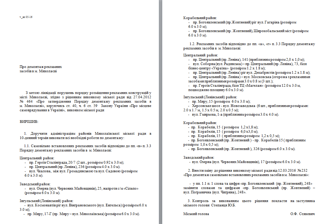 В Николаеве исполком согласовал снос 30 незаконных рекламных конструкций