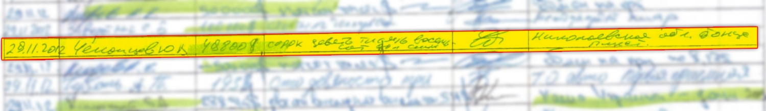 2 октября 2012 года он получил $637500 с формулировкой «Николаевская область, аванс».