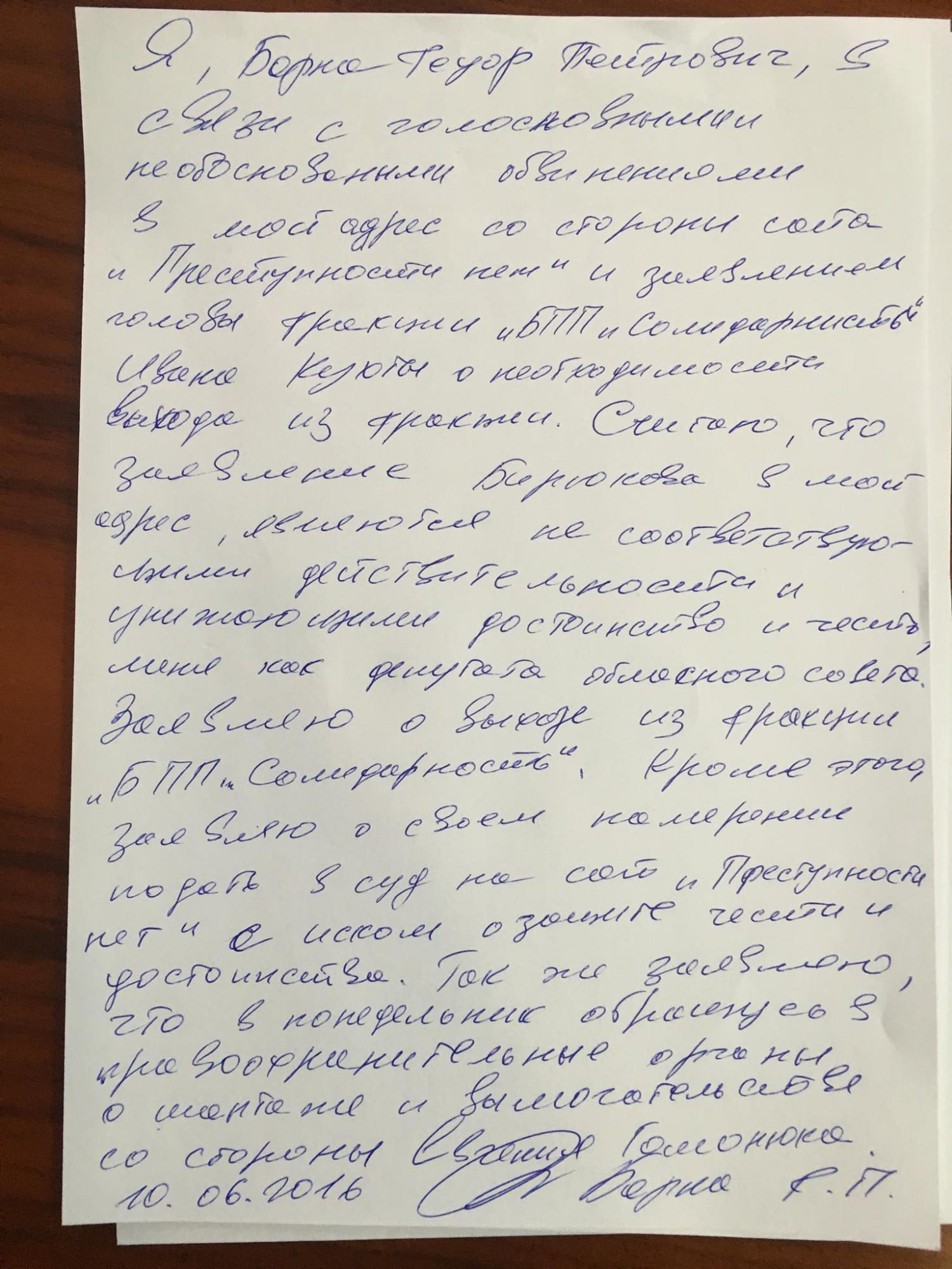 При этом Федор Барна рассказал, что даже не подавал соответствующее заявление, текст которого он опубликовал еще 10 июня на своей странице в Facebook. Кроме того, в интервью НикВестям Федор Барна тогда заявил, что намерен покинуть фракцию в связи с заявлениями руководства фракции и партии в его адрес.