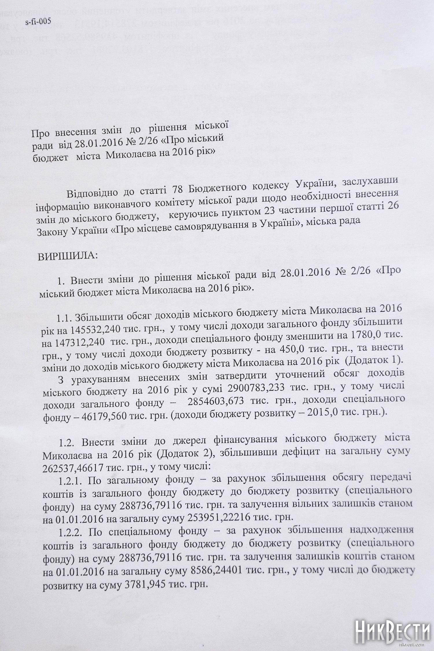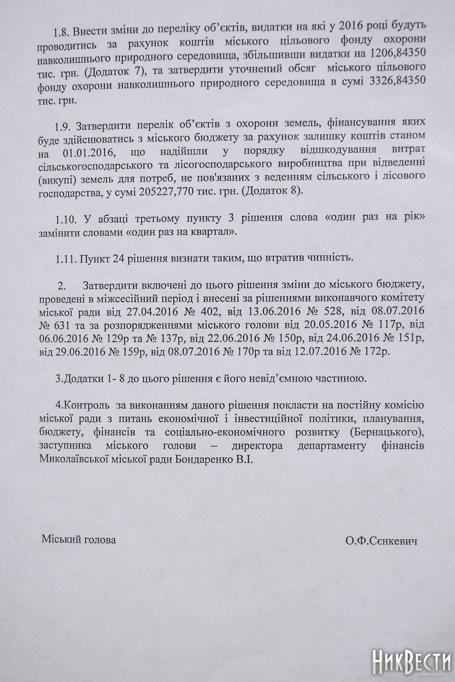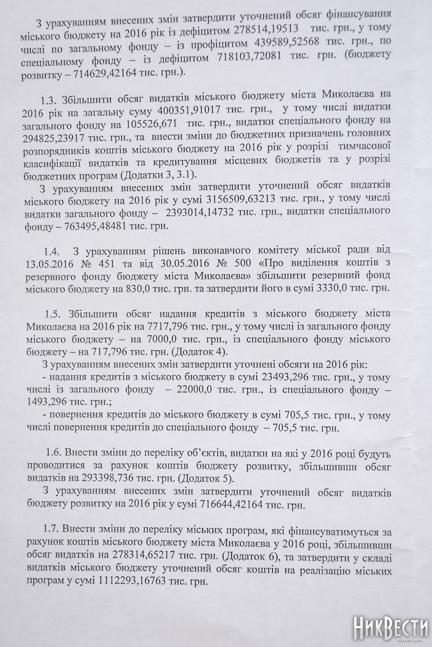 Главный редактор НикВестей, координатор Всеукраинского движения против политической коррупции «Под контролем» в Николаевской области Олег Деренюга у себя на странице в Facebook, речь шла о перераспределении 370 миллионов гривен. Накануне сессии, утром, в 9:00, состоялось заседание бюджетной комиссии, которая поддержала этот проект решения.