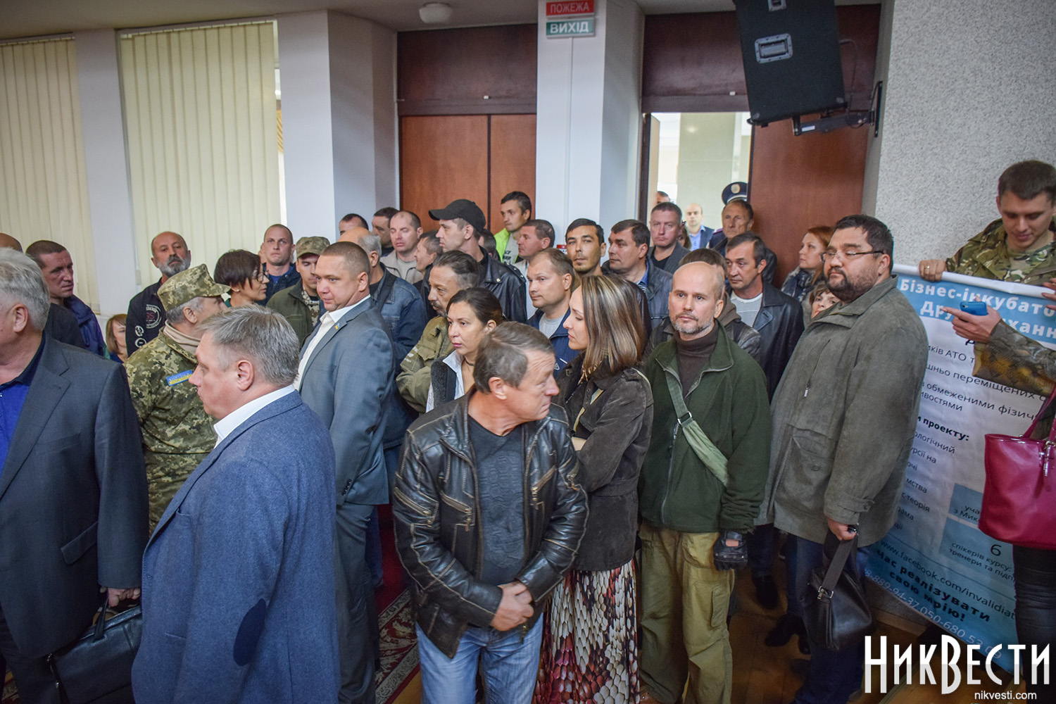Перед голосованием председатель Николаевского филиала общественной организации «Украинская ассоциация инвалидов АТО» Илья Шполянский пояснил, что эти деньги выделяются не на общественную организацию, а на региональный Фонд поддержки предпринимательства. Кроме того он обратился к депутату облсовета от «Оппозиционного блока» Александру Ясинскому, который ранее критиковал этот проект.