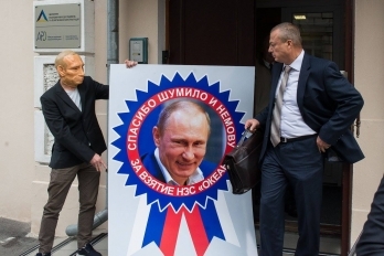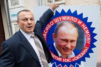 Сразу же после пресс-конференции директора ООО «Океан-Судоремонт» Леонида Шумило и председателя профкома первичной профсоюзной организации работников судостроения Украины Николаевского судостроительного завода «Океан» Анатолия Немова возле офиса «Интерфакс-Украина» встретили активисты и вручили им «ордена» имени Путина «За взятие НСЗ «Океан».
