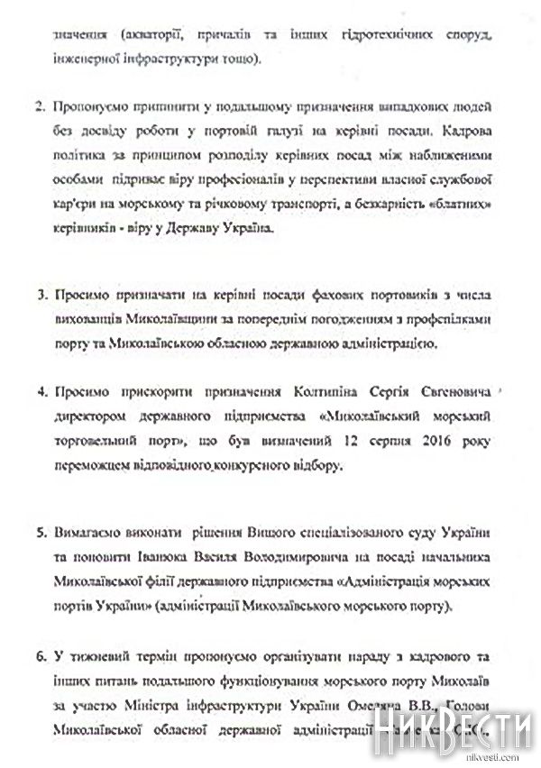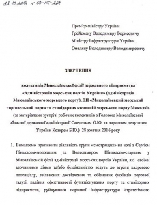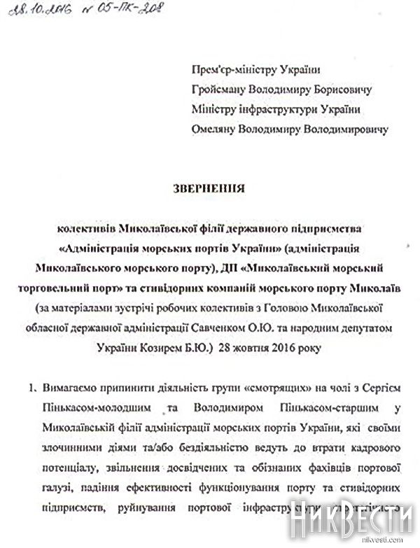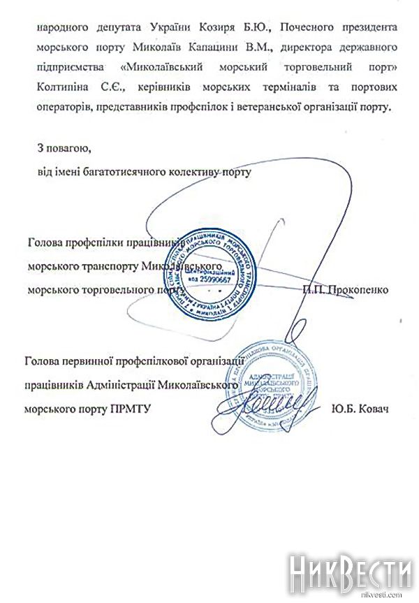 Представители трудовых коллективов предприятий, которые работают на территории Николаевского морпорта, категорически против нового руководства Николаевского филиала «Администрации морских портов Украины» в лице Виктора Козонака и заместителя начальника по безопасности Владимира Пинькаса.