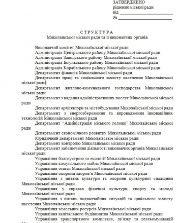 Сегодня, 22 декабря, на сессии Николаевского городского совета депутаты утвердили новую структуру Николаевского городского совета и его исполнительных органов.