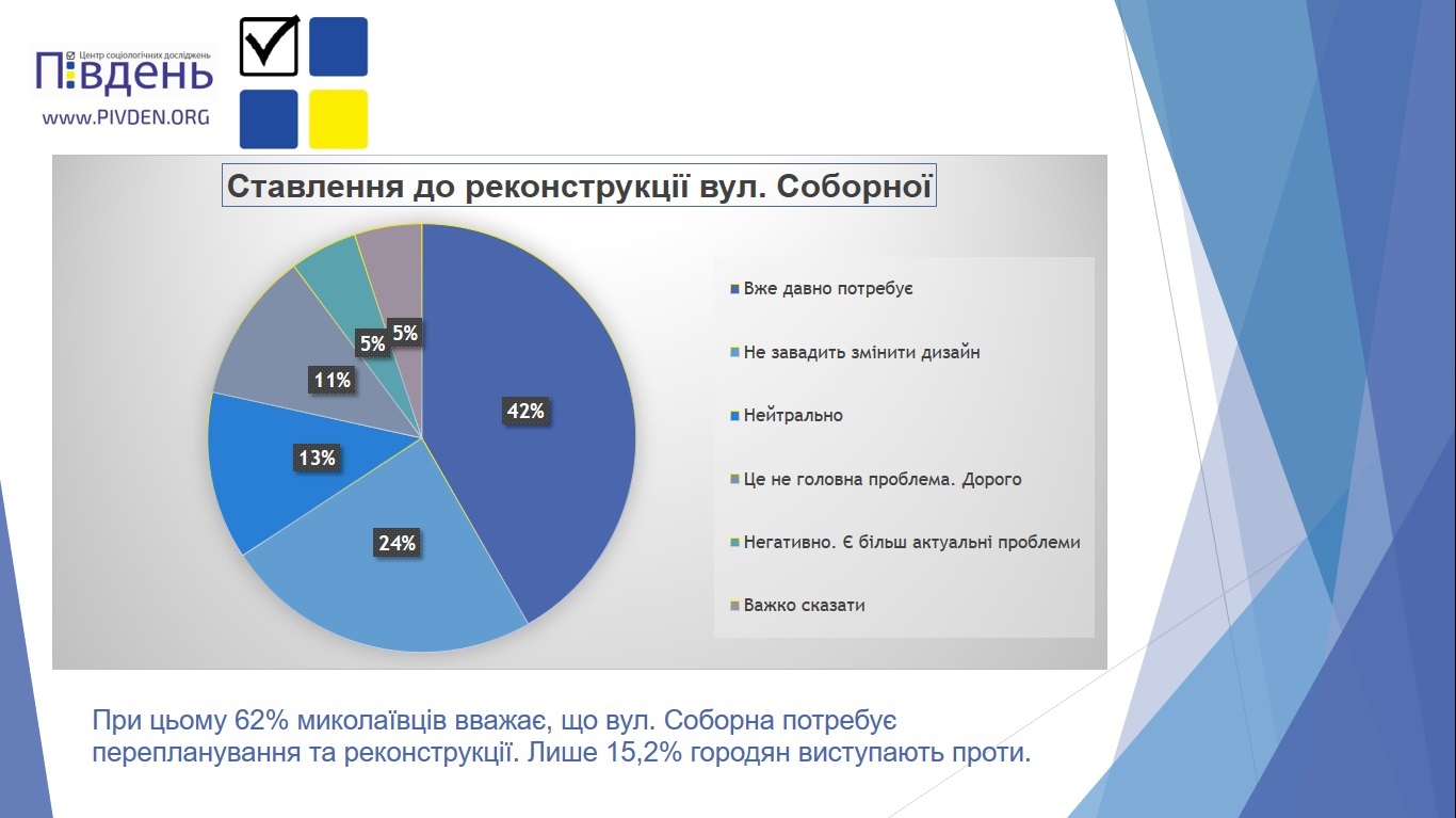 Социологи изучали мнение жителей и посетителей улицы Соборной в городе Николаеве относительно проведения дизайнерских кампаний и реализации социальных проектов по реконструкции и перепланировки внешнего вида центральной улицы города.