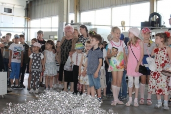 Для детей заводчан было организована экскурсия по предприятию. Детям показали рабочие места их родителей, дедушек и бабушек, объяснили, что они делают и какую пользу приносят обществу своим трудом. Не обошлось и без концертной программы, шоу аниматоров и, конечно же, детских сладостей.