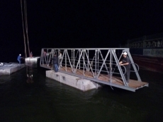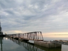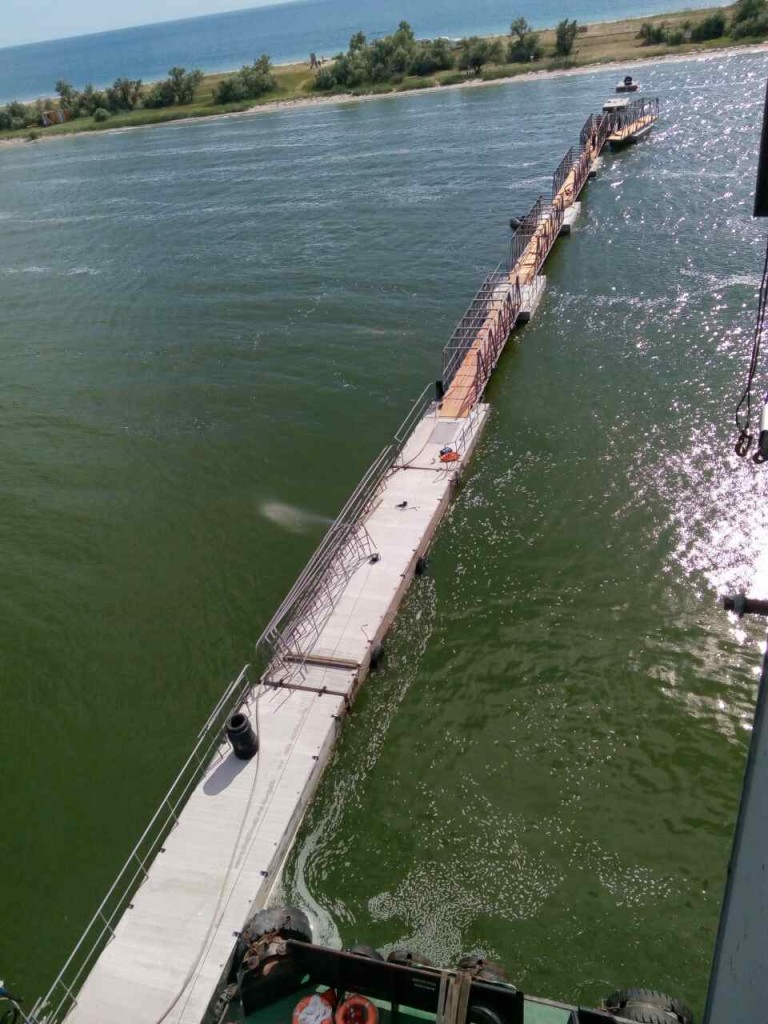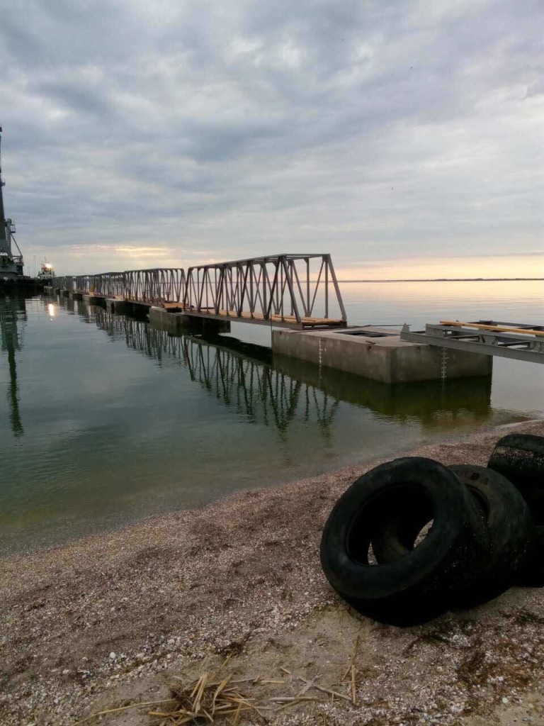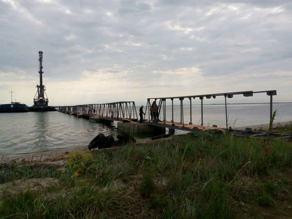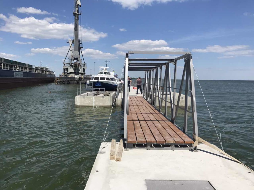 На самом деле, это непростое гидротехническое сооружение состоит и 6 пролетов металлобетонных конструкций, а по сути – из 6 мостов, изготовленных скадовской фирмой «Скадовск-Марина». Его общая длина – 165 метров. Это необходимо для обеспечения необходимой глубины для безопасного подхода «ракет».
