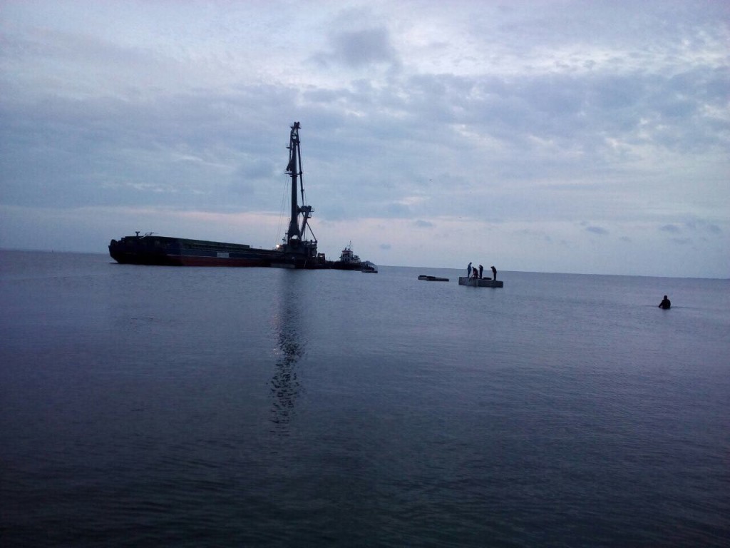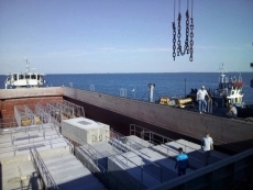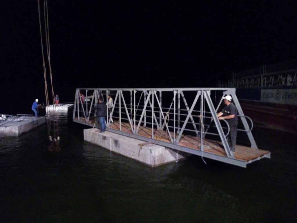 Работы по установке причала велись круглосуточно. Шторм, бушевавший на море, сильно осложнил задачу, но компания с ней справилась, причал установлен!