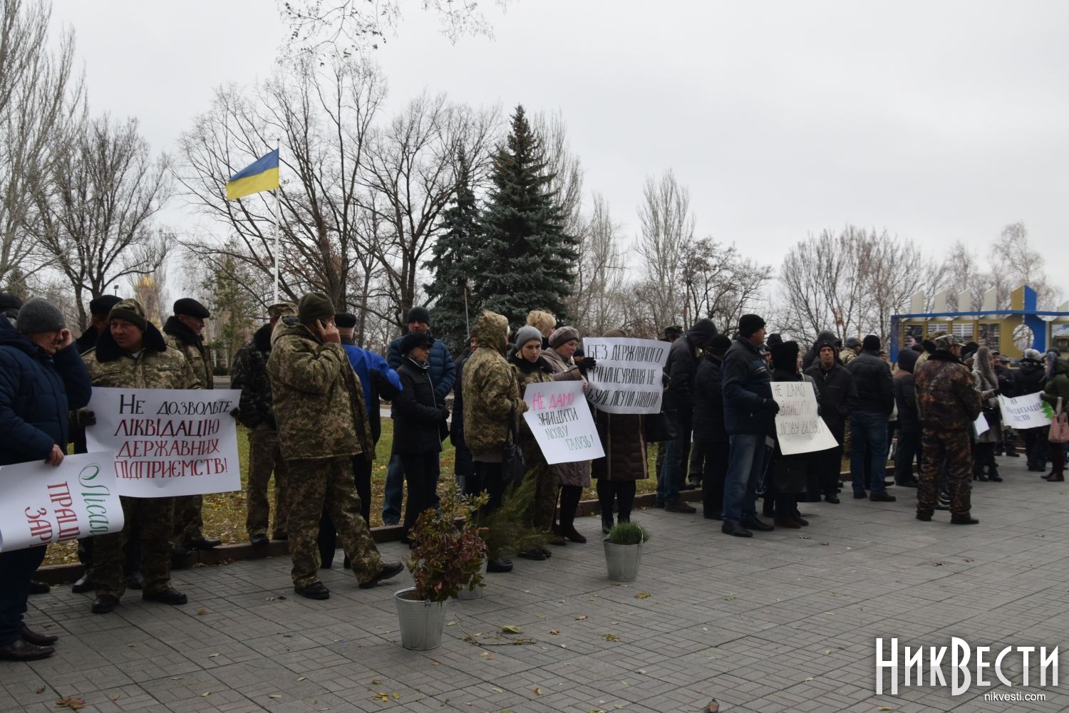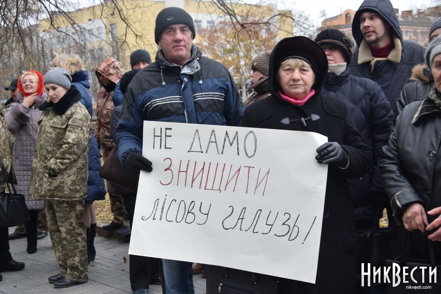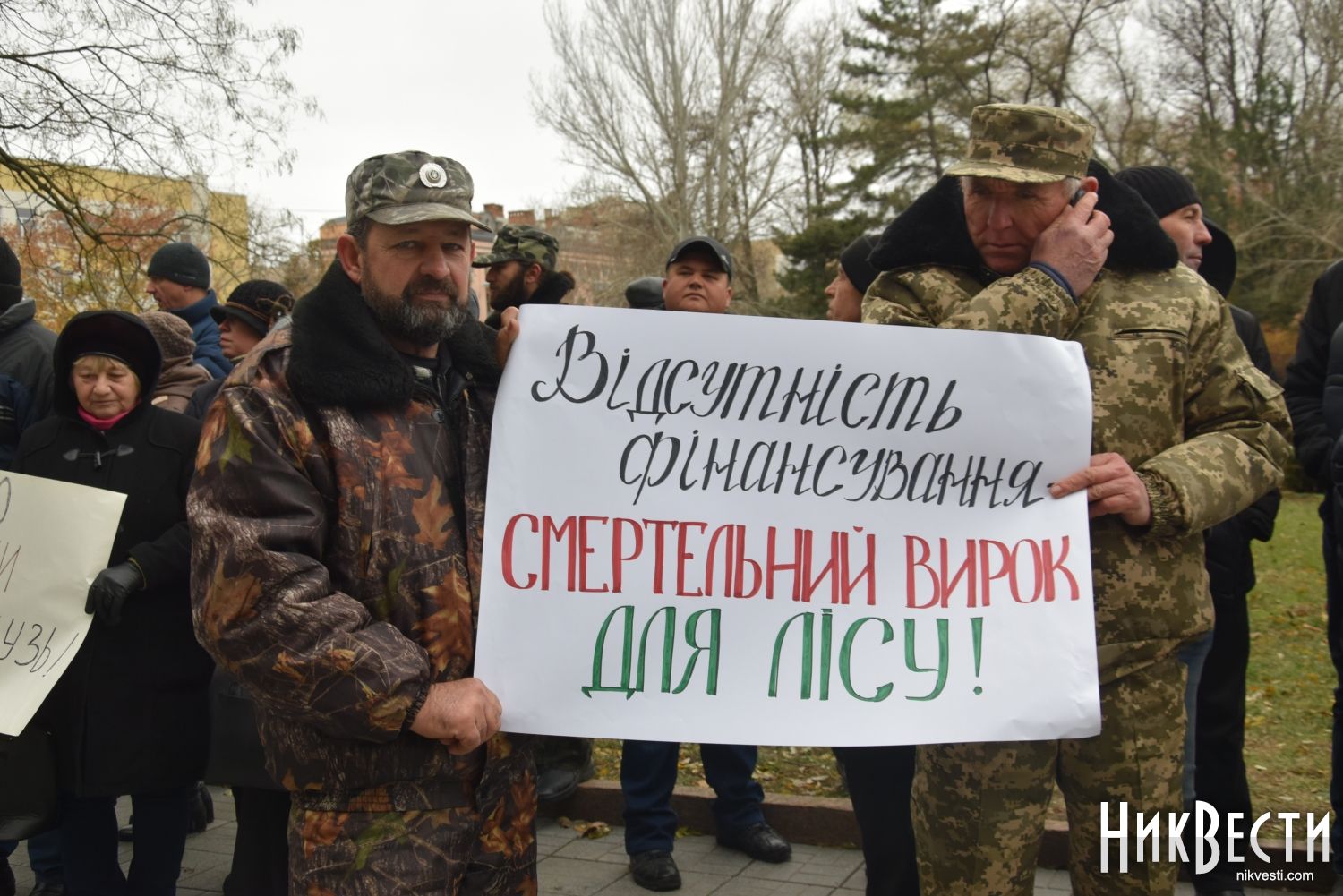 На митинг собрались сотрудники государственного предприятия «Вознесенское лесное хозяйство», а также представители областного профсоюза работников лесного хозяйства Николаевской области.