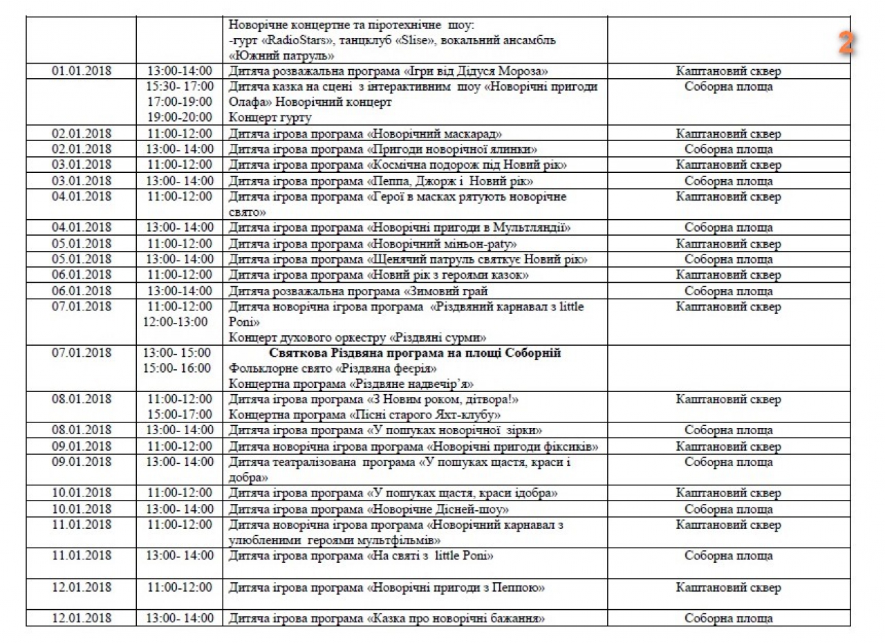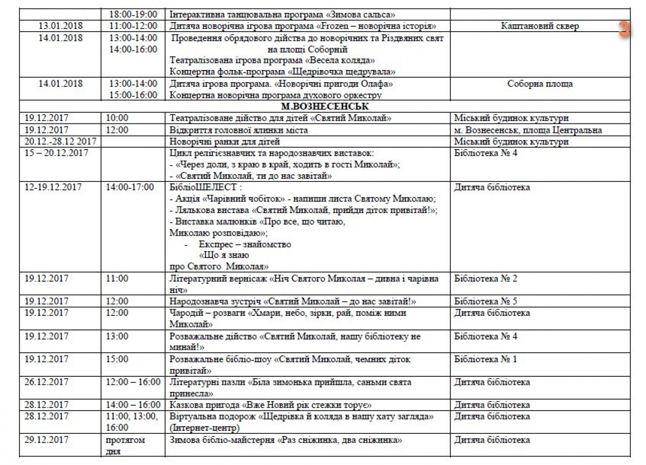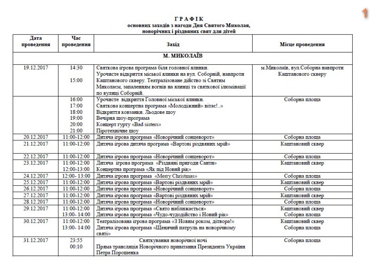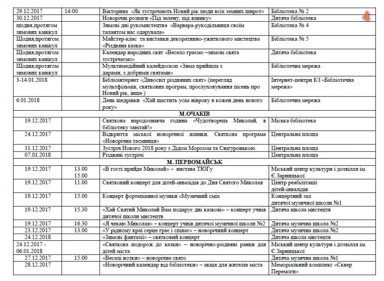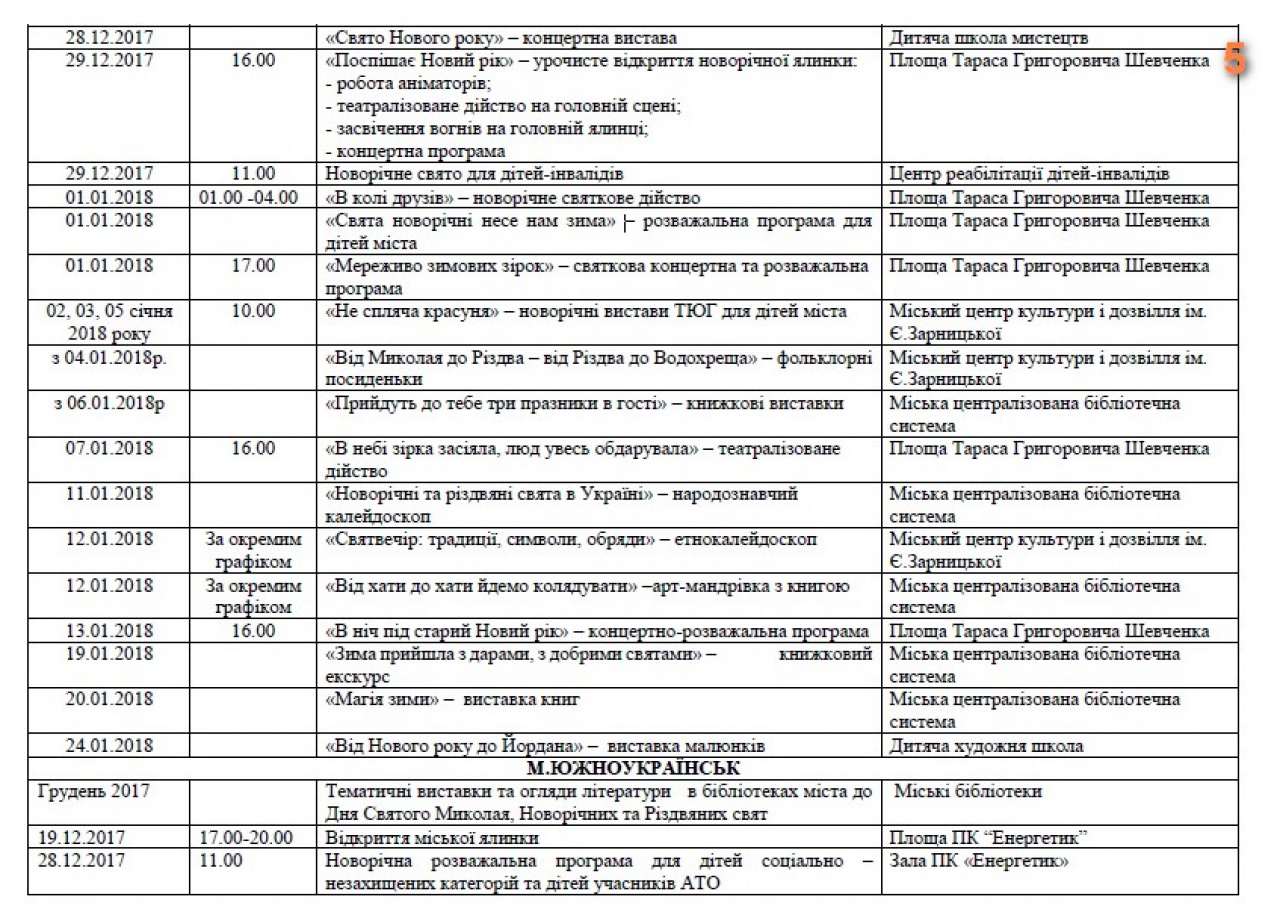 Николаевская облгосадминистрация опубликовала полный список мероприятий в районах и городах Николаевщины по случаю новогодних праздников.