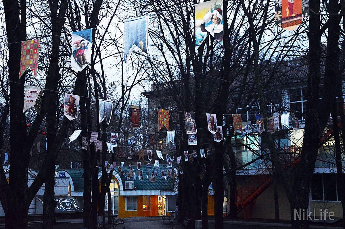 В Николаеве Каштановый сквер принарядили к зимним праздникам. В пятницу, 15 декабря, тут закончили устанавливать «бывшую» новогоднюю елку, а деревья в сквере украсили 500 красных шариков. А в понедельник, 18 декабря, с самого утра около двух сотен людей собрались, чтобы добавить праздничной атмосферы скверу.