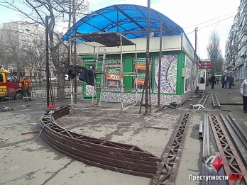 В субботу, 17 марта, в Николаеве на улице 3-й Слободской возле остановки общественного транспорта без соответствующих документов устанавливается сооружение на месте, где недавно был снесен киоск.
