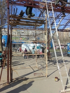 На углу проспекта Центрального и 3-й Слободской полным ходом монтируется сооружение пока неизвестного назначения в двух шагах от пешеходного перехода.