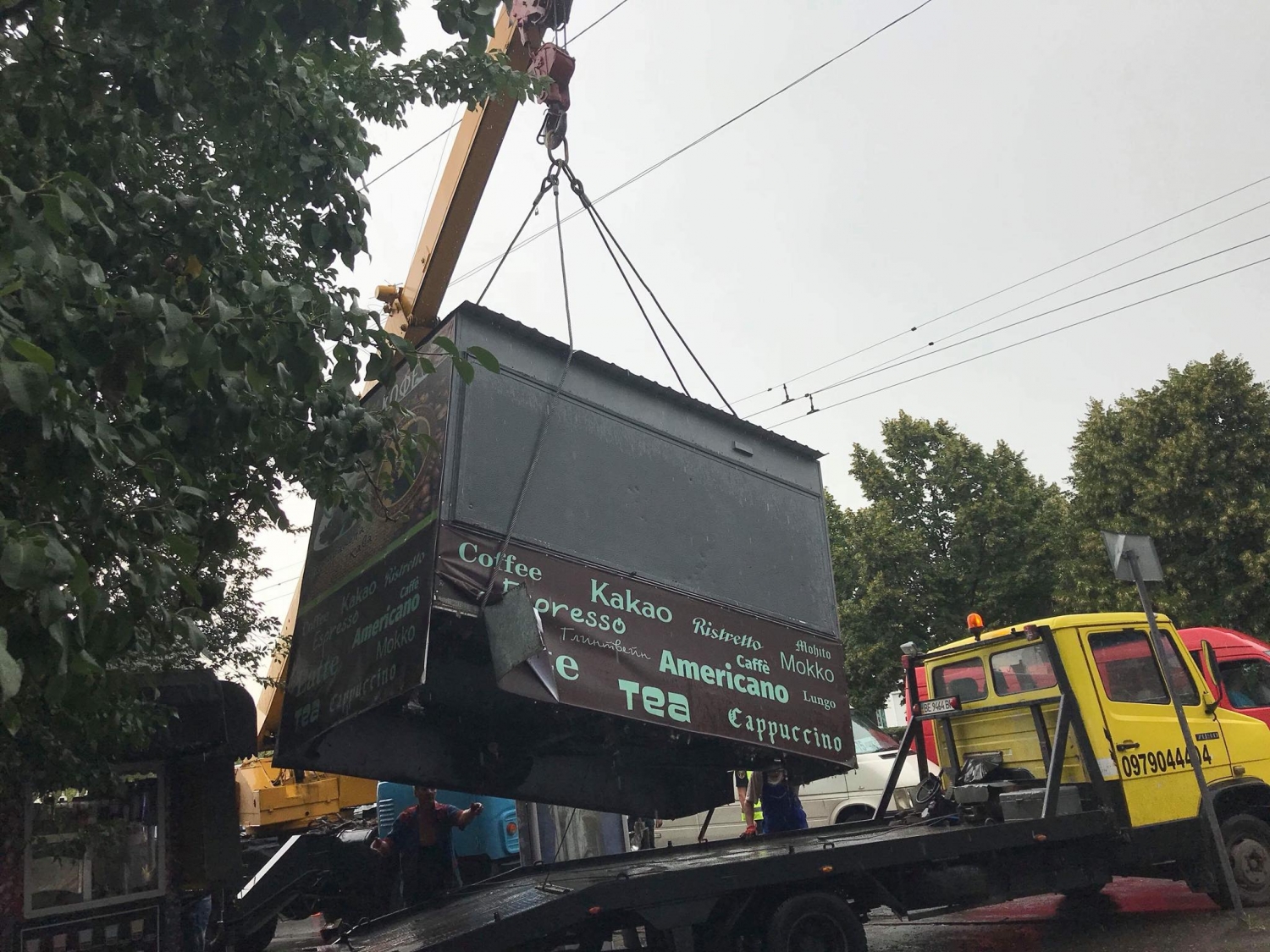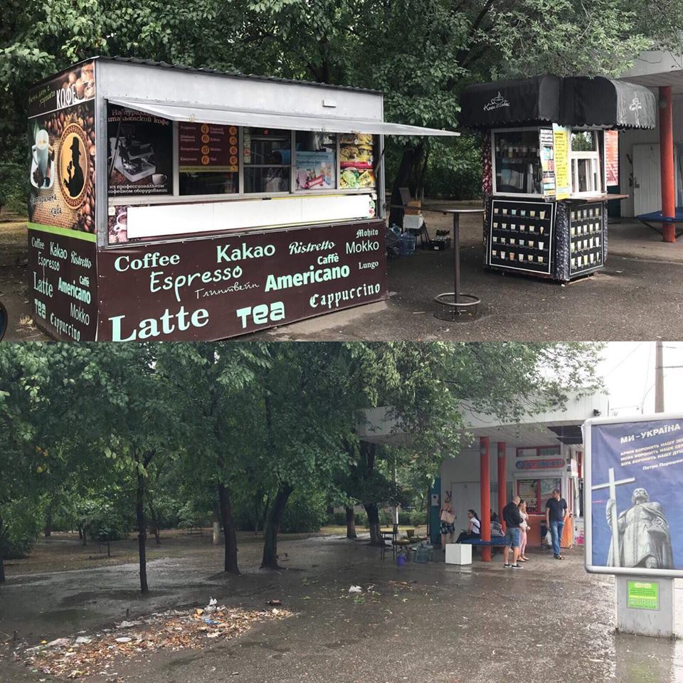 — Несмотря на дождь, немного поработали по демонтажу незаконных временных сооружений на оживленных магистралях: улицы Пушкинской и проспекте Центральном, - написал он.
