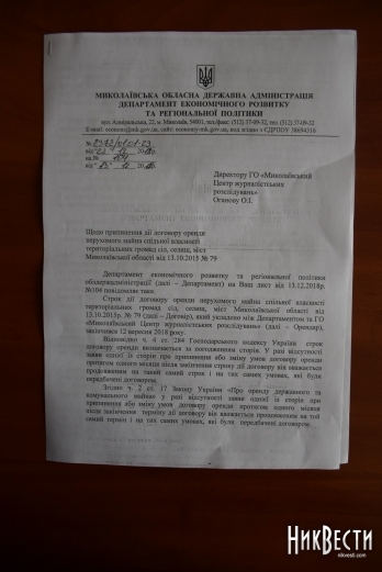 Напомним, в сентябре главный редактор газеты «Рідне Прибужжя» Татьяна Фабрикова заявила, что областная власть препятствует работе редакции газеты, в частности всячески затягивает процесс подписания договора аренды на пользование помещениями, в которых размещена редакция газеты, а со вчерашнего дня в здании на улице Никольская 46, отключили свет. После этого депутат Николаевского областного совета Вадим Олабин возмутился, что теперь уже независимое издание «Редакция газеты «Рідне Прибужжя» арендует в центре города у Николаевского областного совета помещение ликвидированного коммунального предприятия площадью 2 тысячи м² за 1 гривну в месяц, а не по рыночной цене. Чиновники Николаевской ОГА могут потребовать покинуть здание на Никольской, 46, где последние 20 лет располагалась редакция газеты «Рідне Прибужжя», из-за того, что у редакции нет договора аренды, который бы подтвердил, какую площадь занимает редакция. В октябре редакция бывшей Николаевской областной коммунальной газеты «Рідне Прибужжя» подала судебный иск на Николаевскую облгосадминистрацию, обвинив чиновников в препятствовании разгосударствлению издания. В ноябре Татьяна Фабрикова заявила, что на месте здания, в котором расположена редакция газеты, хотят построить многоэтажку.