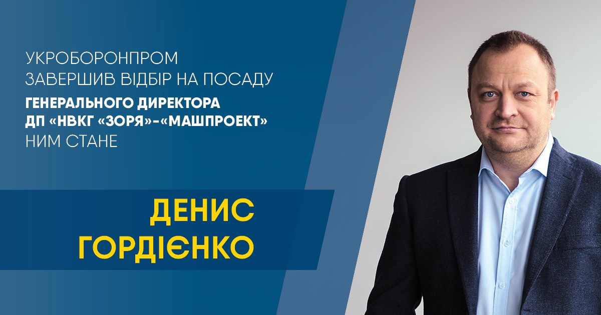 — Победителем отбора на должность генерального директора одного из крупнейших государственных предприятий «Укроборонпрома» дивизиона судостроения и морской техники ГП НПК газотурбостроения «Зоря» - «Машпроект» стал Денис Гордиенко, – говорится в сообщении.