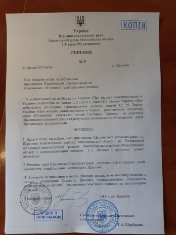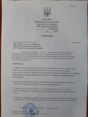 «В нашей территориальной общине ожидаются изменения. В Нечаянский сельский совет Николаевского района Николаевской области поступили предложения от Даниловского сельского совета Березанского района Николаевской области и Счастливского сельского совета Березанского района о присоединении к Нечаянской ОТГ», - написал он.