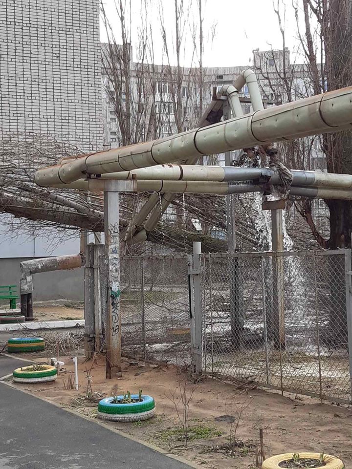 Сообщается, что деревья упали на надземные тепловые сети «Николаевоблтеплоэнерго», которые проходят от котельных Карпенко 51А и Самойловича 42.