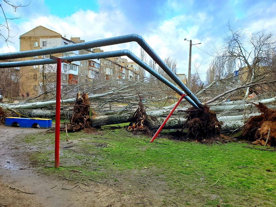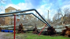 В Николаеве деревья, которые упали из-за сильного порыва ветра, повредили надземные тепловые сети из-за чего без тепла остались 10 жилых домов и детский сад.