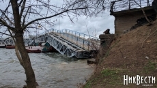 — Я не могу назвать сроки, но не меньше месяца мы его будем восстанавливать, потому что оторвалось крепление, которое удерживало мост со стороны берега. Мы сейчас обращаемся к 61 заводу (Николаевский судостроительный завод, - прим.), потому что для восстановления моста нужны плавкраны и буксиры и другие специальные техсредства. Ранее, если вы помните, он затапливался, но это не такая большая проблема, впервые он так оторвался, и сейчас будем делать там серьезные мероприятия, - сказал Александр Сенкевич.