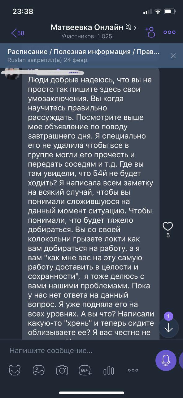 — Стоимость проезда в один конец 54 маршрута более 400 гривен. 10 человек — это 60 гривен. Где брать деньги на заправку на следующий день? Вопрос открыт, принимаем предложения, — написала она.
