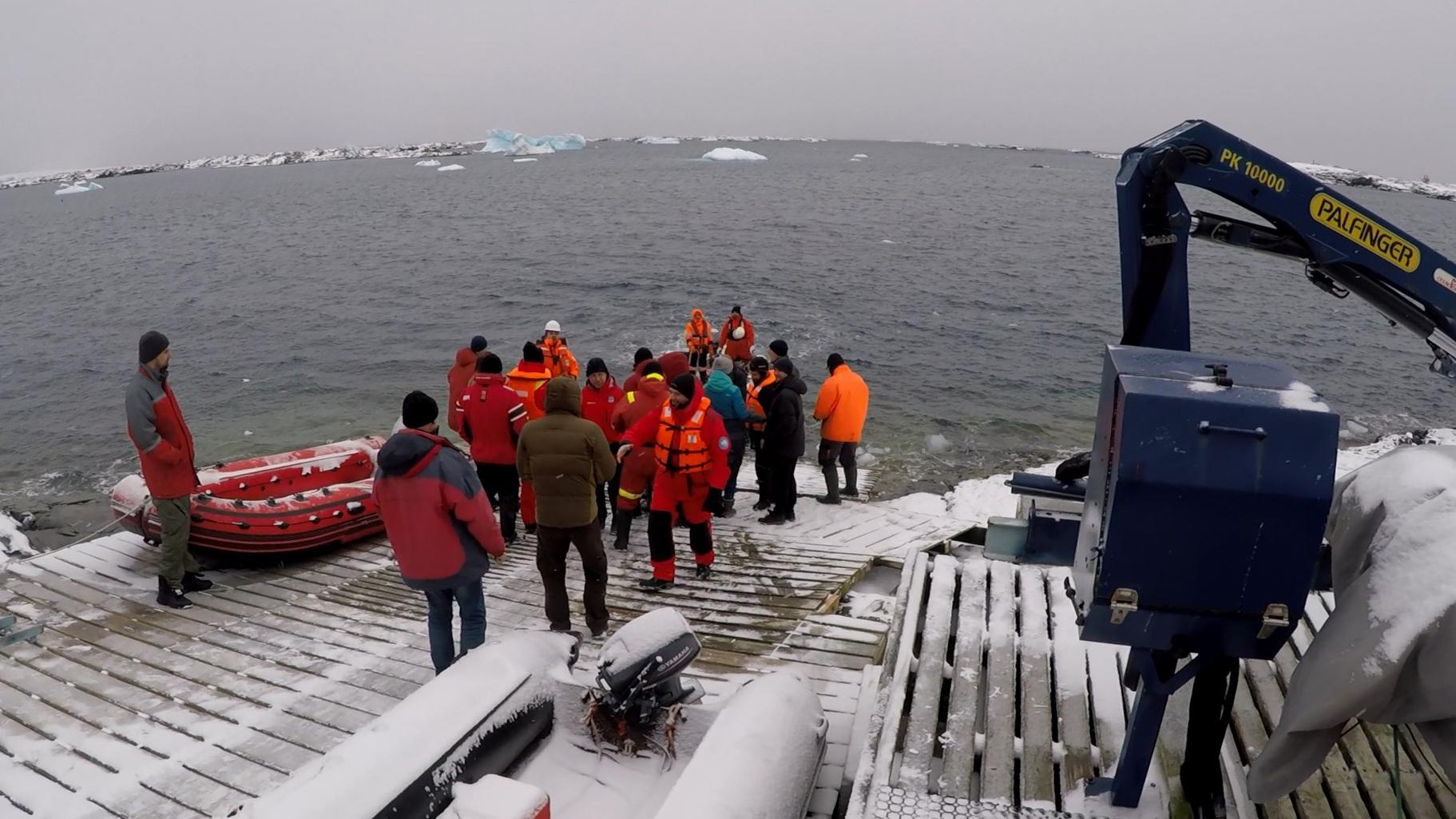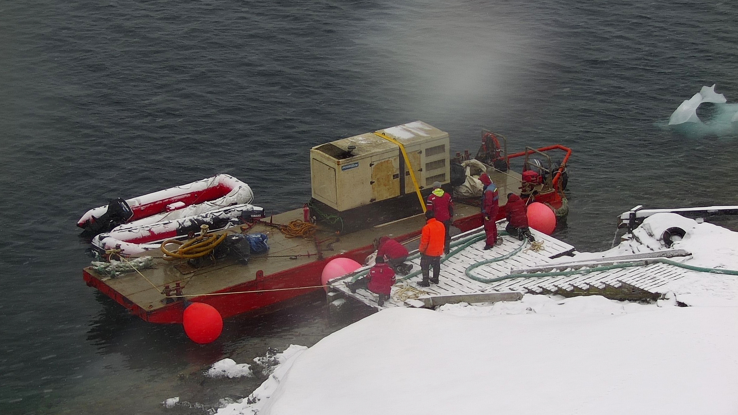 Сейчас на станции сложные погодные условия: очень ветрено и снежно. Главной задачей полярников в ближайшие несколько дней является разгрузка корабля. В Чили на него загрузили около 6 фур запасов продуктов, приборов и горючего. Однако, по словам самих участников экспедиции, несмотря на плохую погоду, у них прекрасное, праздничное настроение, с которым работать гораздо легче.