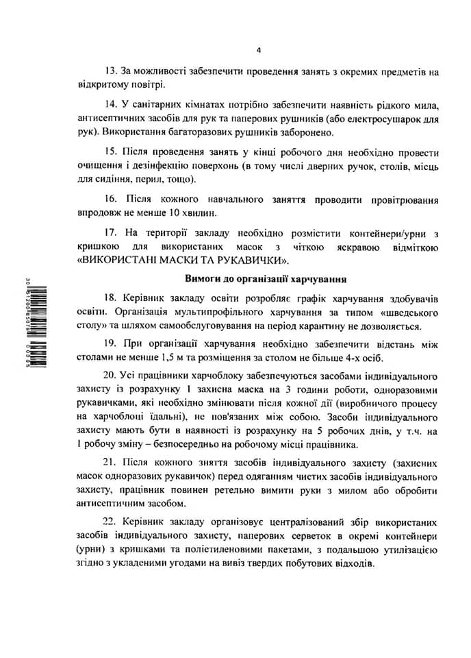 В рекомендациях МОЗ указано, что помещение в учебных заведениях должны регулярно проветривать — не позднее чем через 10 минут после урока. После завершения учебы помещения и поверхности будут дезинфицировать.