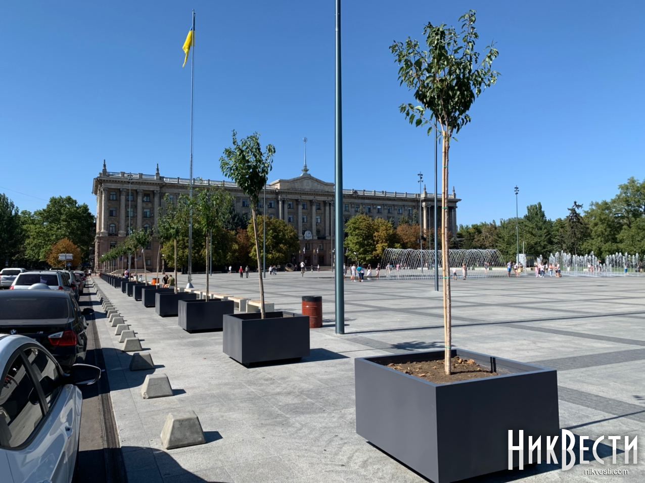 На Соборной площади в Николаеве установили кадки с живыми деревьями