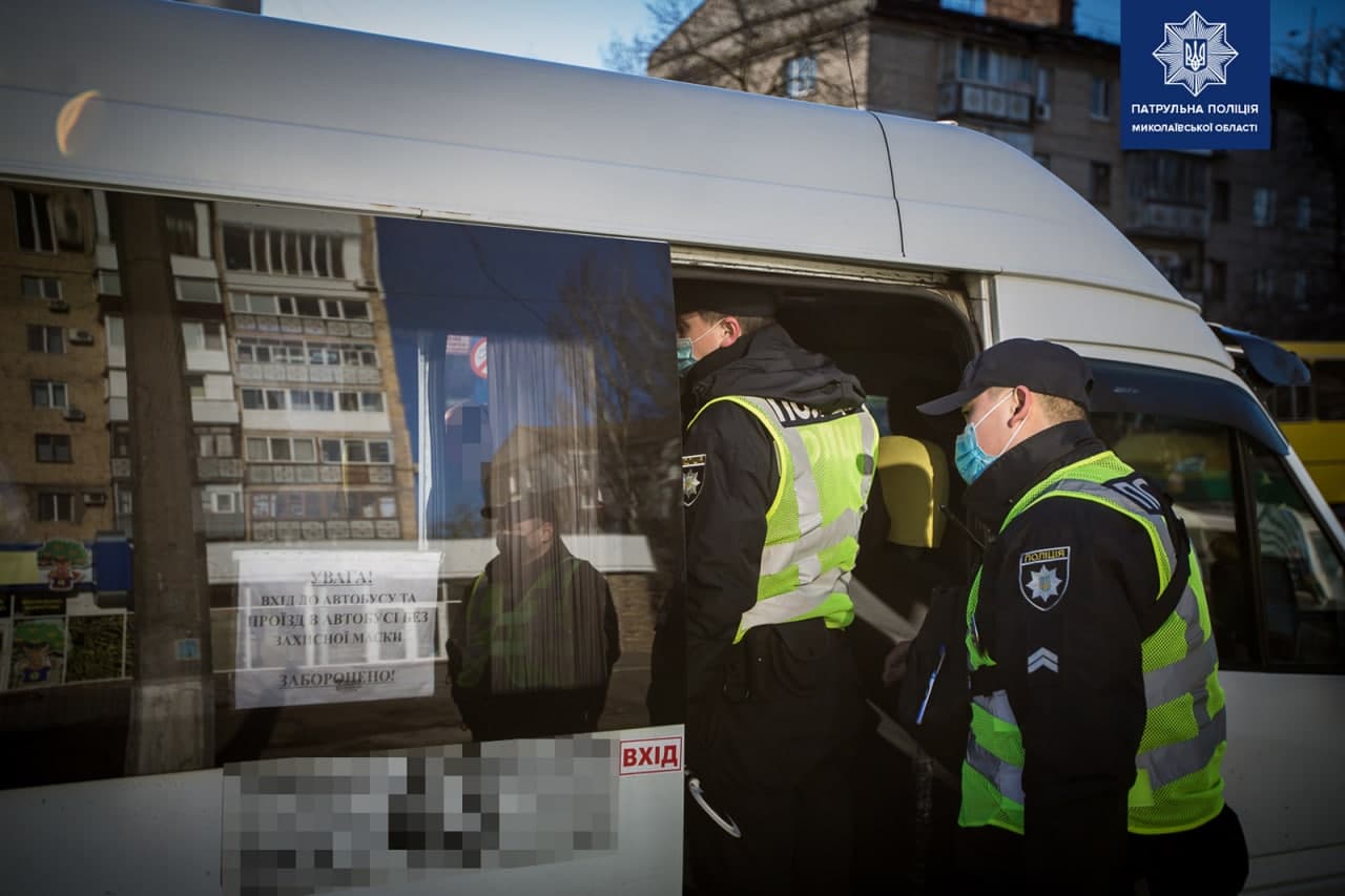 В Николаеве патрульная полиция проверяет соблюдение карантина водителями автобусов и маршруток.