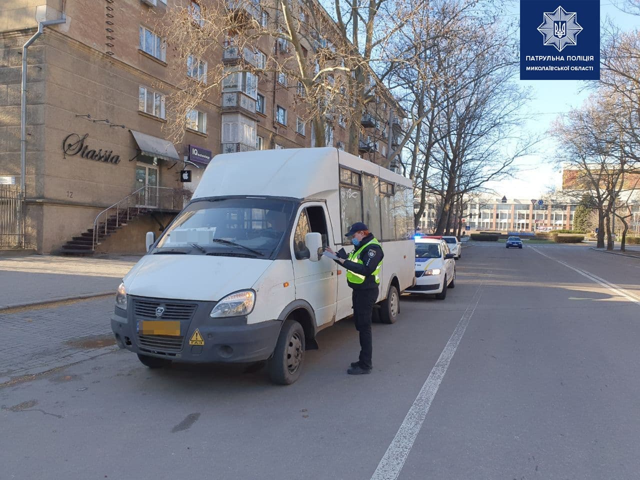«Меняют маршруты, чтобы избежать проверки», — в Николаеве патрульные штрафуют маршрутчиков, работающих в запрещенное время