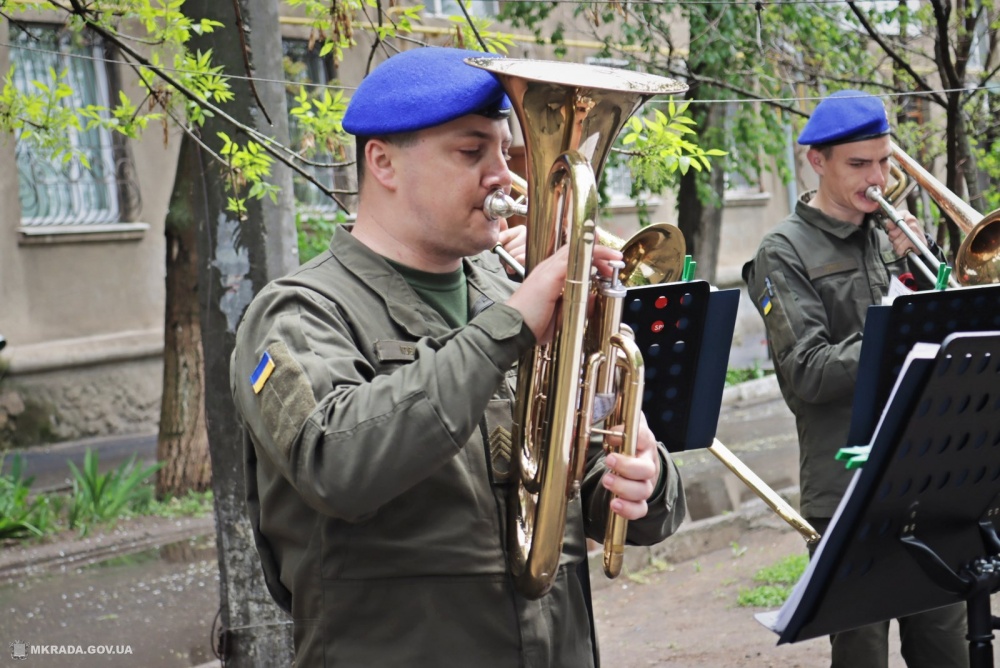 В знак почтения подвига освободителя у дома Дмитрия Иванця сыграл военный оркестр Национальной гвардии Украины.
