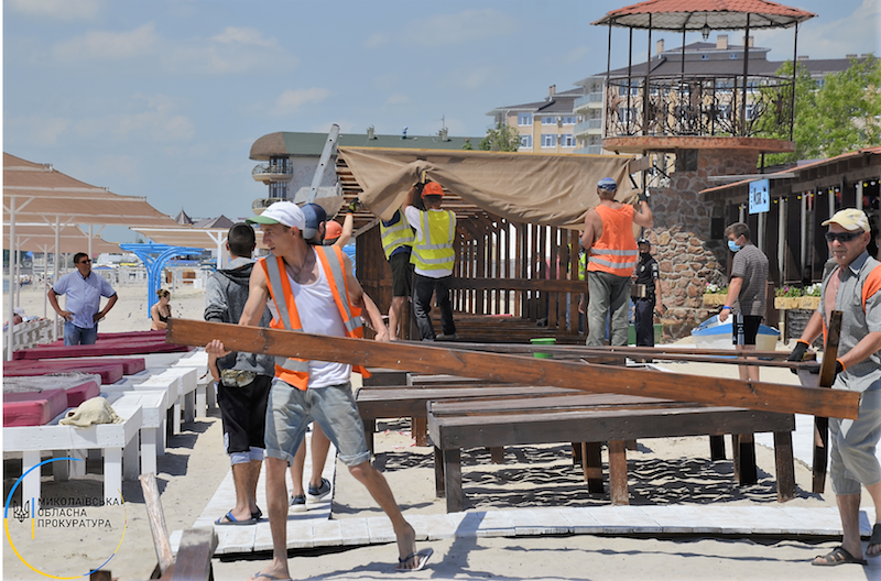 «Николаевской окружной прокуратурой приняты меры к реальному исполнению решения от 07.03.2017 года об освобождении земельного участка в пределах прибрежной защитной полосы Черного моря в зоне отдыха «Коблево» и обязательства снести 5 объектов — одноэтажных зданий и сооружений общей площадью 320,1 кв. м», — говорится в сообщении.
