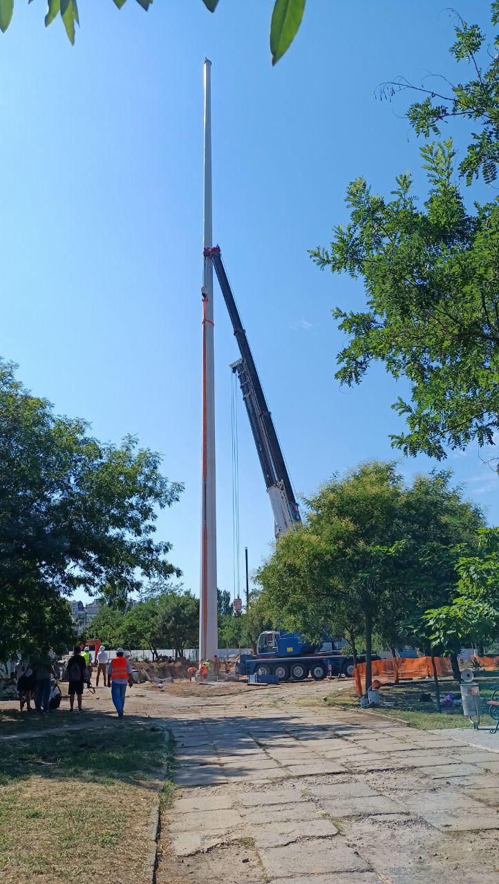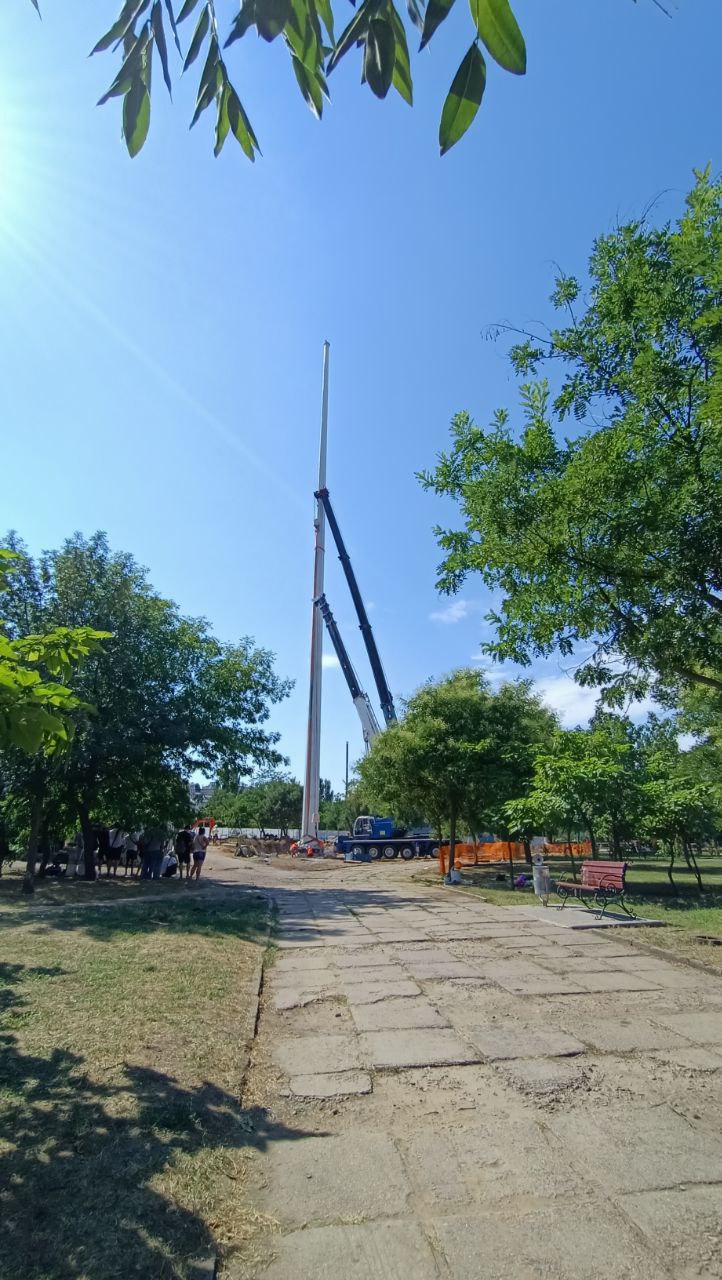 4 августа рабочие установили 72-метровый флагшток в сквере «Юных героев» в Николаеве.