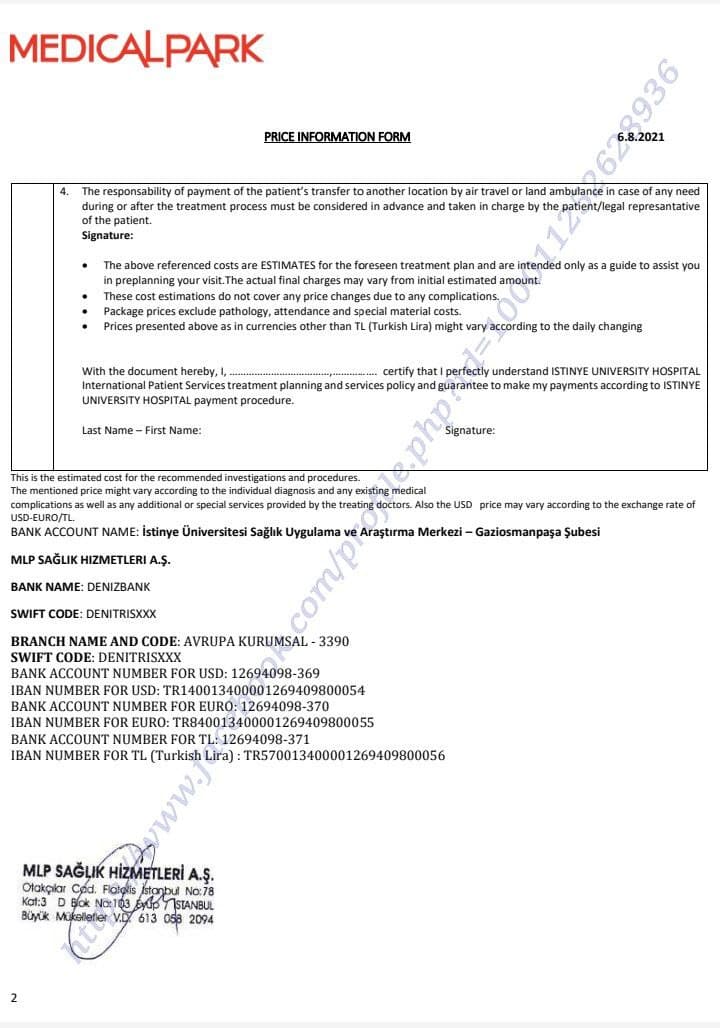 На обследование в Турции необходимо собрать 2 тысячи евро (1500 — медицинские услуги, 500 — перелёт с сопровождающим и проживание).
