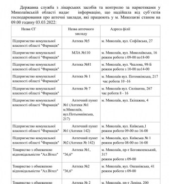 В Николаеве в четверг, 3 марта, работает 22 аптечных пункта.