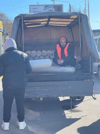Гайду везет в Николаев рулоны пленки, чтоб заклеить окна школ и больниц, выбитые из-за ракетных обстрелов