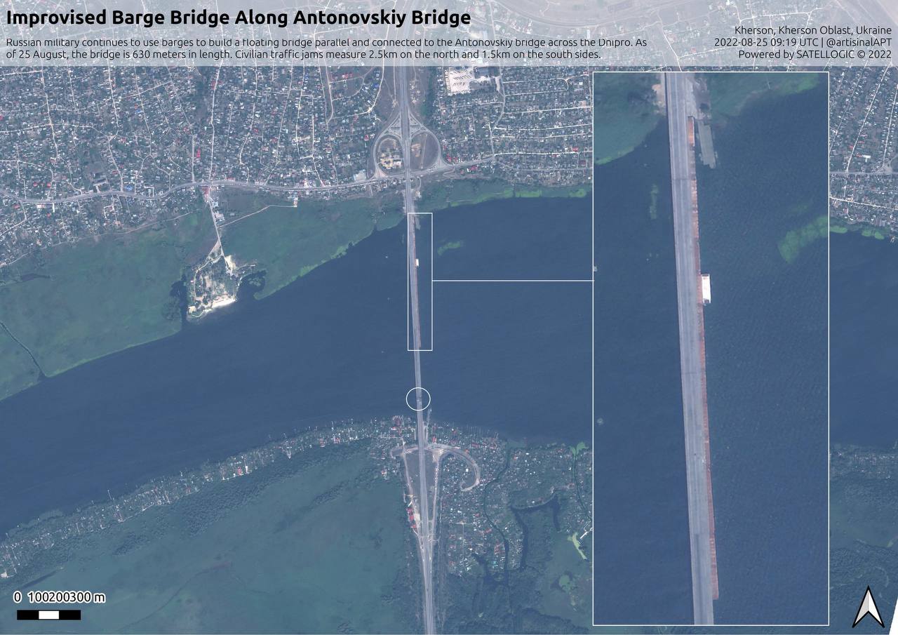 Поряд с Антонівським мостом росіяни будують переправу з барж, які вкрали в українських судновласників. Зокрема, частина барж належить миколаївському підприємству «Нібулон».