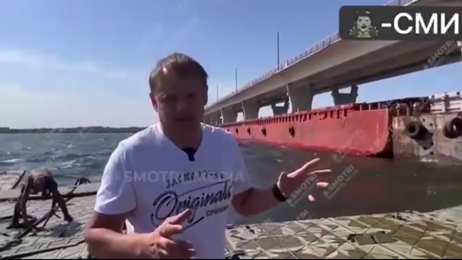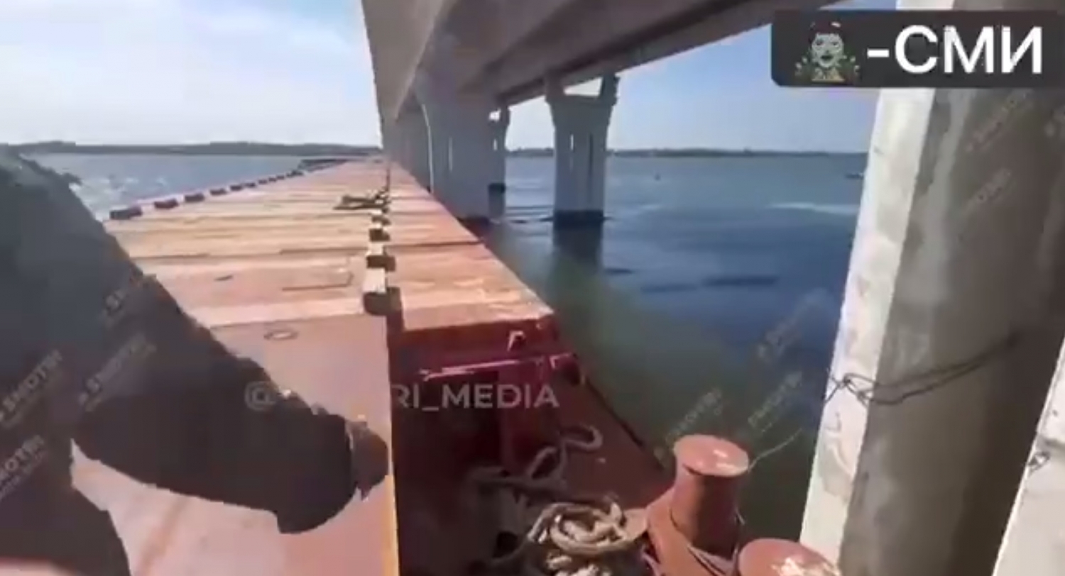 «Конструкцію з барж змайстрували окупанти поруч з Антонівським мостом в Херсоні. Презентує особисто гауляйтер Стремоусов. «Миші плакали, кололись, але продовжували їсти кактус», — написав Андрій Цаплієнко.