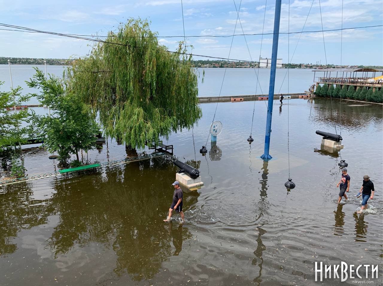 Як наслідок – почало повністю або частково затоплювати територію Херсонської та Миколаївської областей, зокрема самі обласні центри. Людей та тварин з Херсонської області автобусами та потягом евакуйовують з Херсона до Миколаєва та інших міст.