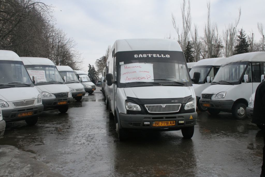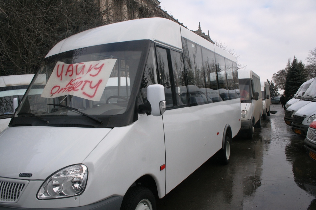 'Маршрутчики' пикетируют заседание исполкома, на котором решится судьба автобусов-'гармошек' в Николаеве