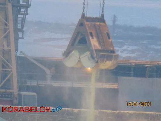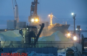 Вчера, 14 января, весь день шла погрузка на судно серы, которая насыпью находилась на причале "Ника-Теры".
