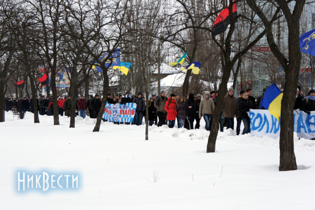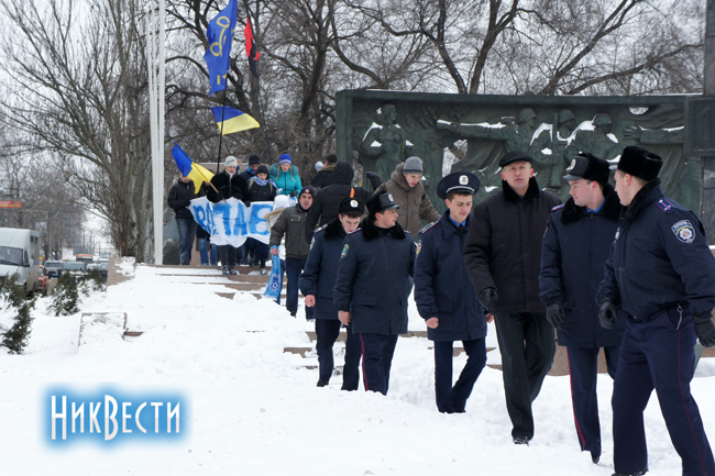 Марш, как обычно водится на всех мероприятиях в Николаеве, где участвует «Свобода», проходил под пристальным вниманием милиции и сотрудников ГАИ. А бойцы спецподразделения «Беркут» постоянно следовали у хвоста колонны в автомобиле до самой мэрии.
