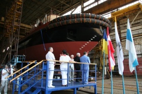 Он также отметил, что сегодня спустили пятый по счету полнокомплектный буксир, который ЧСЗ строит для зарубежного партнера - компании АS «PKL Flote.